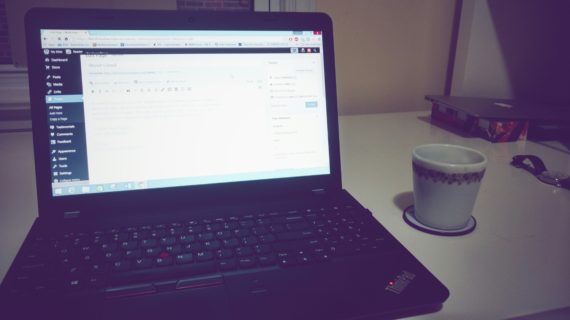 Following my shower and the usual routine of morning prep, I was able to sit and do this; write in my blog.