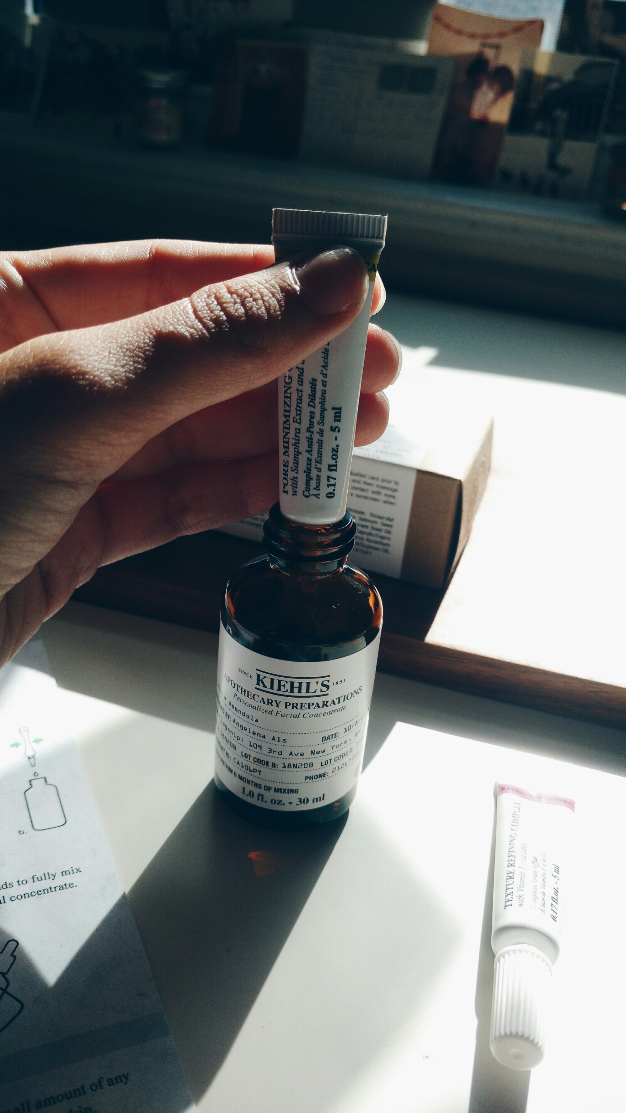 Using a tester tube, she created a concoction of the two concentrates and the oil base that would make up my newest skincare product. My preparation would include concentrates of the following products: